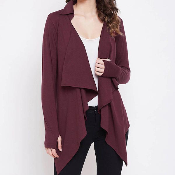 Women Maroon Solid Open Front Shrug