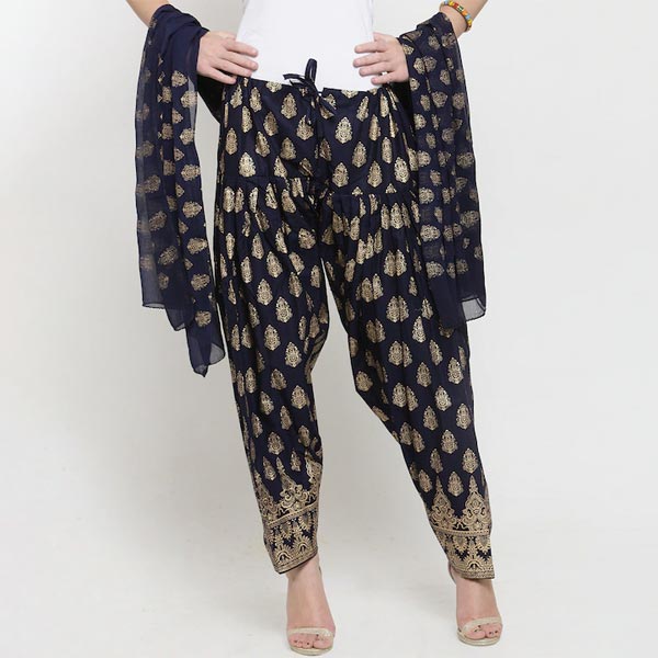 Navy blue and gold-toned printed salwar and dupatta set