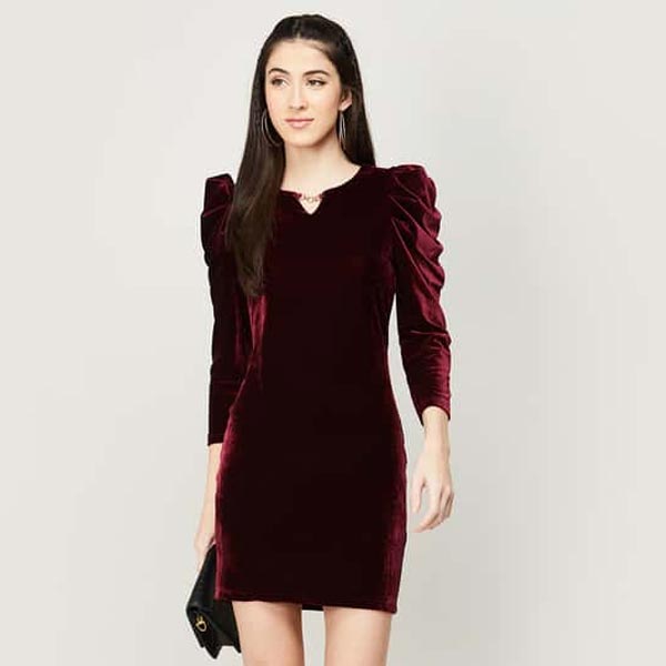 Amp up your style with this bodycon dress, beautifully detailed with a solid tone, 3/4th sleeves, embellished keyhole neckline, and slim fit. Disclaimer: Please check the size guide before you buy. You may need one size bigger than other popular (If you usually fit into Size S of other popular you may need Size M).