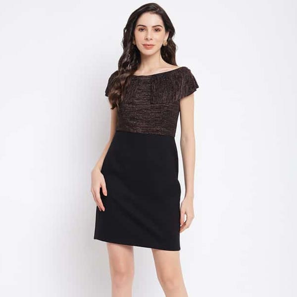 Show your exceptional style with this bodycon dress, beautifully tailored with premium fabric, detailed with textured design, drop shoulder sleeves, boat neck, and amazing fit.