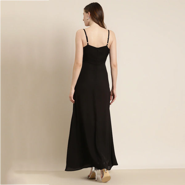 Black Solid Crepe Maxi Dress