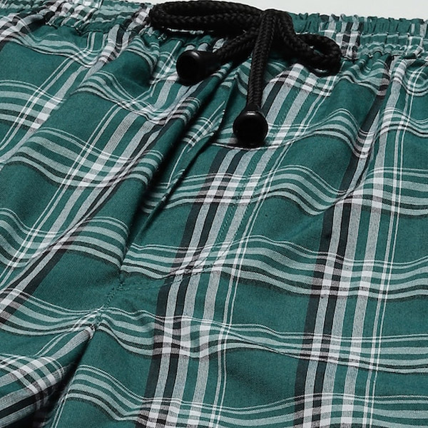 Men Green & White Checked Cotton Night suit