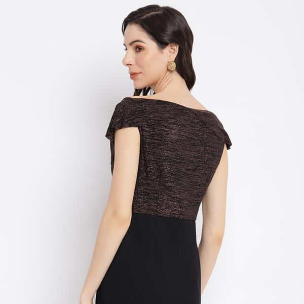 Show your exceptional style with this bodycon dress, beautifully tailored with premium fabric, detailed with textured design, drop shoulder sleeves, boat neck, and amazing fit.